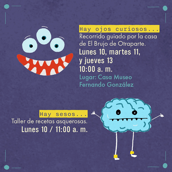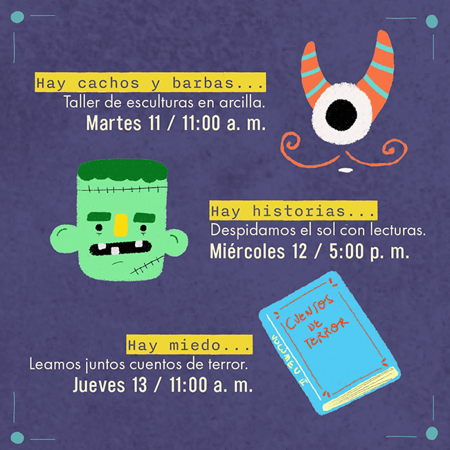 ¿Qué tiene un monstruo por dentro? La respuesta es fácil si solamente pensamos en lo asqueroso que puede ser. La próxima semana nos encontraremos para descubrir cachos, barbas y muchos ojos, a la vez que pensamos en la ternura, la amistad y la curiosidad que pueden contener estas criaturas. Acompáñanos para jugar y divertirnos descubriendo lo que hay dentro de un monstruo.