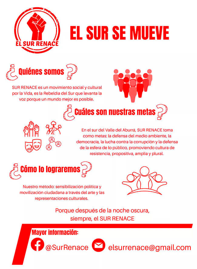 En el marco de la protesta juvenil y ciudadana que actualmente ocurre en el país, se conformó el movimiento social y cultural «El Sur Renace» en el sur del Valle de Aburrá. A la sombra del «vivir a la enemiga», el El Derecho a No Obedecer y el amor por la juventud que profesó Fernando González, la Corporación Otraparte acoge en el Teatro del Parque Cultural y Ambiental Otraparte una reunión de ciudadanos que se organizan pacífica y culturalmente para contribuir a la transformación de Colombia.