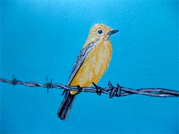 Pero tan pronto registran los detalles del cuadro pasamos a una realidad más compleja, donde se entrometen factores fuera de nuestro control, donde esta misma vida de colores se ve amenazada. Hay una contrapartida, un contraste entre el mundo interior y el exterior. Esto se agudiza por la disonancia creada entre su estilo naive y las realidades violentas que describe.