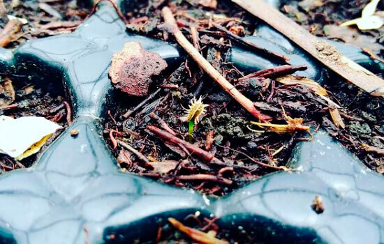 Semilla ecológica de zanahoria germinando en sustrato de capote de bosque, lombrihumus y cáscara de huevo. Foto © Flor de la Montaña Semillas.
