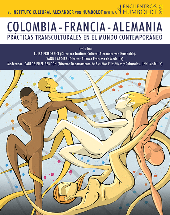 Conversan Luisa Friederici (Instituto Cultural Alexander von Humboldt) y Yann Lapoire (Alianza Francesa de Medellín) con la moderación de Carlos Emel Rendón (Universidad Nacional de Colombia).