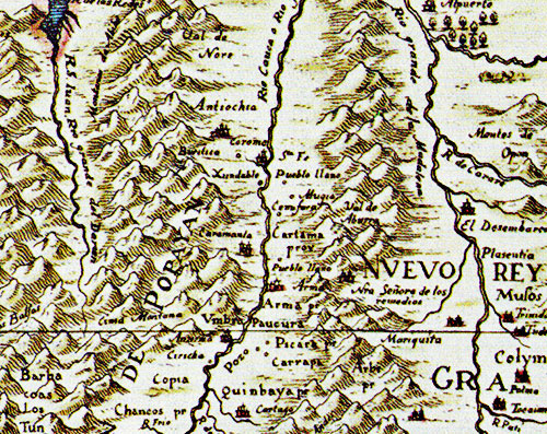 Valle de Aburrá en un mapa de la Nueva Granada y Popayán elaborado por Guillermo Janszoom, Amsterdam, 1635.
