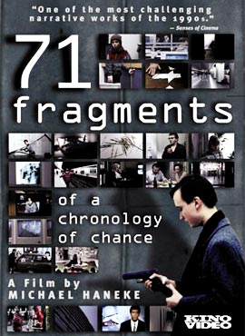 La película sigue durante tres meses la vida de todos aquellos que, por obra del azar, en víspera de Navidad coinciden en un banco donde un joven austriaco perturbado de 19 años entra y dispara de modo irracional y aleatorio contra todo aquel que se cruza en su camino. Son 71 secuencias que pretenden mostrar cómo un determinado entorno puede llegar a ser indirectamente culpable de un crimen individual. La frialdad y distancia casi clínica con que Haneke mira a sus personajes no impide que el espectador se involucre en el transcurrir y devenir de cada uno de ellos. No hay un juicio moral de los personajes, sólo los hechos desnudos, recogidos de modo casi documental. Tercera parte de la trilogía de Haneke sobre la violencia en la sociedad moderna (los otros dos filmes fueron “El séptimo continente” y “El video de Benny”).