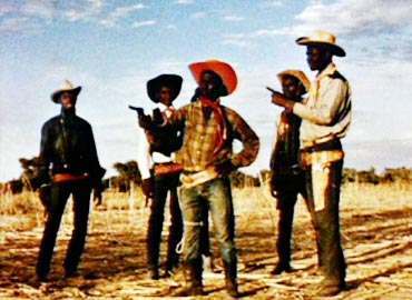 De regreso de un viaje a EE. UU., un joven nigeriano trae a los amigos de su pueblo las vestiduras completas de los cowboys norteamericanos. Entonces se transforman en “verdaderos” vaqueros que enlazan jirafas, asaltan, aterrorizan a los vecinos de la villa y se retan en los inevitables duelos del Salvaje Oeste. Sin embargo, el Concejo de Ancianos encontrará una manera de traerlos nuevamente a la normalidad. Mustapha Alassane nació en Nigeria. Mecánico, autodidacta, descubrió el cine con Jean Rouch, antes de comenzar sus estudios de cine en Canadá con Claude Jutra y Mac Laren Normando. “La Bague du roi Koda” (1962) y “La Mort de Gandji” (1965) son las dos primeras películas de dibujos animados en la historia del cine africano.