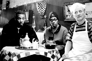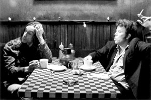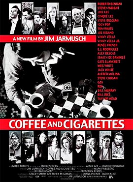 Basada en un cortometraje que recibió en 1993 la Palma de Oro del Festival de Cannes, cada secuencia de la película muestra a diversos personajes sentados alrededor de una mesa, tomando café, fumando cigarrillos y discutiendo temas tan diversos como la correcta preparación del té inglés, las teorías sobre la conspiración contra Elvis Presley, Abbot & Costello, la ficticia banda de rock SQÜRL, París en los años veinte o el uso de la nicotina como insecticida. “Más allá de la procesión de nombres y rostros familiares como Tom Waits, Iggy Pop, Bill Murray, los vocalistas de The White Stripes, Roberto Benigni, Cate Blanchett o Steve Coogan, Café y cigarrillos funciona también como un auténtico manifiesto estético. No en vano las diferentes historias, rodadas en un impecable blanco y negro y ambientadas en distintas cafeterías neoyorquinas, constituyen una defensa explícita del minimalismo cinematográfico”. —Bestiario.com