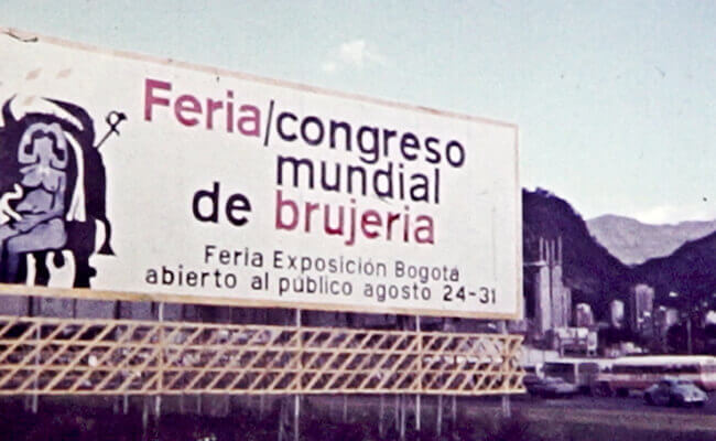 Bogotá fue noticia mundial durante el año 1975, cuando se celebró el Primer Congreso Mundial de Brujería, un evento en el que hubo espacio tanto para los ilusionistas internacionales, como para los ovnis que contaron con su propia pista de aterrizaje. El Congreso sacudió las mentes de los más conservadores, quienes vieron cómo el mundo puso los ojos en esta ciudad por una semana, ante un suceso que parece sacado de un libro de ficción. Simón González, el organizador del Congreso, programó todo tipo de eventos culturales relacionados con la brujería y las ciencias ocultas. Expertos dieron conferencias sobre telepatía, alquimia, regresiones e hipnosis, también se organizó el Salón de Arte Brujo, se otorgó un Premio Internacional de Literatura y se hicieron rituales de candomblé, vudú y hasta limpiezas chamánicas.