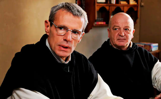 A finales del siglo xx, ocho religiosos cistercienses de un monasterio situado en las montañas del Magreb, en Argelia, conviven en perfecta armonía entre la población musulmana, con la que trabajan y comparten ritos y celebraciones. Sin embargo, de forma inesperada, varios trabajadores extranjeros son asesinados por un grupo armado. Aunque el Ejército ofrece protección a los monjes, estos la rechazan y al poco tiempo reciben la visita del grupo que ha llevado a cabo la matanza. Mientras el prior se mantiene firme y consigue deshacerse de ellos, algunos de los religiosos quieren irse del monasterio, aunque la decisión debe ser colectiva. Tras definir la situación, los monjes tratan de salvar la vida de los terroristas, postura que enfurece al Ejército, pero ahora tienen claro que su deseo es permanecer en la región y resistir a toda costa. La película obtuvo en 2010 el Gran Premio del Jurado en Cannes.