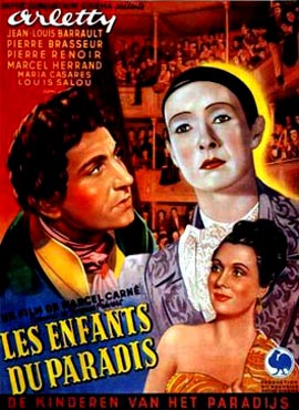 París, 1828. Dos jóvenes artistas, Bapriste Debureau y Fréderick Lemaitre, debutan en el teatro de los Funámbulos y entablan amistad. Una misteriosa y atractiva mujer, Garance, irrumpe en sus vidas. Mientras Bapriste, tímido, no se atreve a declararle su amor, Frederick la convierte en su amante. Sin embargo, implicada en una serie de crímenes, la mujer busca la protección del Conde de Montray y desaparece. Siete años más tarde, Garance regresa a París, donde los tres hombres que habían influido en su vida aparecen de nuevo en escena. Les Enfants du Paradis fue filmada durante la Segunda Guerra Mundial, durante la ocupación Nazi, y estrenada en 1945. El filme está dividido en dos actos (dos películas diferentes de hora y media cada una). El primero es “La plaza de los ladrones” y el segundo “El hombre de blanco”, que constituyen un canto al teatro, la tragedia y la libertad. El “realismo poético” en su más exquisita representación.