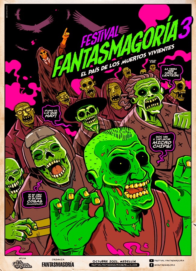 Fantasmagoría: Festival de Cine Fantástico y de Terror de Medellín surgió en 2018 como una iniciativa de un grupo de cinco amigos y aficionados al terror con la intención de traer a la ciudad un espacio que permita el acercamiento del público al cine de género. La propuesta es derrumbar los estereotipos, el rechazo hacia el terror, y que se aprecie, más allá del cine comercial, todo el espectro y el gran universo de posibilidades que ofrecen este tipo de producciones. La exploración no se propone solamente a partir del cine, sino por medio también de otras manifestaciones culturales como la literatura, la ilustración y las artes plásticas.