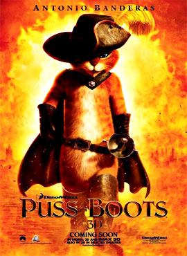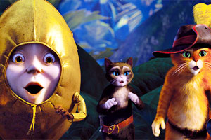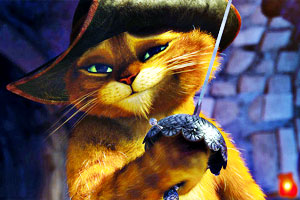 Tras convertirse en forajido en contra de su voluntad, el Gato espadachín busca la redención con el fin de regresar con orgullo a su pueblo, San Ricardo, donde fue compañero en el orfanato del astuto huevo Humpty Dumpty. La oportunidad se le presenta cuando Humpty afirma conocer la existencia de la Oca de los Huevos de Oro, que volverá archimillonario a su poseedor. Acompañados de la seductora y espabilada Kitty Zarpas Suaves, una gata salvaje que trae de cabeza a nuestro peludo héroe, los amigos se embarcan en la misión de robarles a Jack y a Jill (unos bandidos con muy malas pulgas) las judías mágicas que, según la leyenda, les llevarán hasta el castillo del gigante, donde se encuentra la valiosa oca.