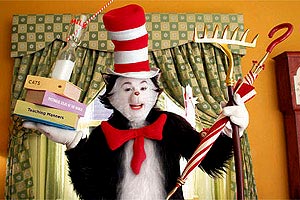 Sally y Conrad, diferentes como el día y la noche, han acabado con la paciencia de su madre Joan Walden, quien trata de mantener la paz en el hogar al tiempo que cumple con éxito sus responsabilidades en una agencia inmobiliaria. Joan debe organizar una fiesta en la empresa y lanza un real decreto materno: Sally y Conrad no podrán salir de casa mientras ella esté en el trabajo. Además, les queda prohibido cometer la más mínima travesura. Los chicos se quedan entonces sin nada que hacer, más allá de mirar por la ventana mientras su niñera, la señora Kwan, dormita en el salón. Lo que parece un día aburrido y miserable se transforma con la aparición de un misterioso gato de dos metros de altura, tocado con un sombrero a rayas y una corbata roja, que les hace una revelación inesperada: “Está bien divertirse…, pero hay que saber cómo hacerlo”. Publicado originalmente en 1957, “The Cat in the Hat” es uno de los libros infantiles más populares de toda la historia.
