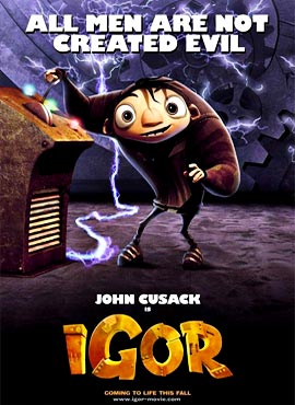 En un mundo lleno de científicos malvados con crueles intenciones, Igor, un jorobado bondadoso que desea convertirse en uno de ellos, sueña con crear su propio monstruo para obtener el ansiado primer premio en la Feria Científica de la Maldad. Sin embargo, en lugar de crear un monstruo peligroso, Igor da vida a la angelical Eva, y sus intentos de convencerla para que se comporte como un monstruo serán una fuente continua de divertidos enredos. En su corazón, Igor es una historia de esperanza y superación en la que se muestra cómo las personas menos favorecidas son capaces de cambiar el mundo. Inspirada en las películas de terror de los años cuarenta, la película es una comedia de animación que mezcla la estética de la Edad Media, la época de la Revolución Industrial y la década de los sesentas.