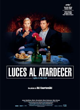 Koistinen trabaja como guarda de seguridad. Ni sus compañeros de trabajo, ni los camareros, ni las fachadas grises de Helsinki perciben su presencia. Trabaja de noche recorriendo las calles y busca un resquicio en el mundo por donde escabullirse, pero la indiferencia general y la mecánica sin rostro de la sociedad se unen para hacer trizas, una tras otra, sus modestas esperanzas. Un grupo de mafiosos, quienes explotan su sed de amor y su profesión con la ayuda de una mujer fría y calculadora, organizan un robo en el que se acusa al desafortunado vigilante como único sospechoso. Toda su vida cambia cuando se ve sin trabajo, sin sueños y sin libertad. La soledad y la fragilidad del hombre occidental contemporáneo son los temas que subyacen en esta trilogía del cineasta finlandés Aki Kaurismäki, que comienza con “Nubes pasajeras” (1996), sigue con “Un hombre sin pasado” (2002) y concluye con “Luces al atardecer” 2006.