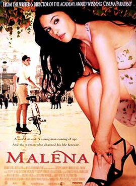 En medio de la declaración de guerra a Francia e Inglaterra por Benito Mussolini, Malena es el personaje más conocido del pequeño poblado de Castelcuto, Sicilia. Odiada por las mujeres, asediada por los varones y venerada por el pequeño Renato como la dulce diosa romana que se pasea sensualmente por sus calles, la hermosa Malena es protagonista de los chismes y acontecimientos de la ciudad. Renato sigue enamorado el trayecto de la solitaria dama, quien de tarde en tarde visita a su padre, el sordo profesor de latín Bonsignore, desde que su marido Nino Scordía ha marchado al campo de batalla. A partir de ese momento Renato se transformará en su admirador número uno, el voyeurista más consagrado que en el afán de captar la atención de la mujer penetra silenciosamente en su cúmulo de secretos para descubrirla en su intimidad. Las primeras escaramuzas con la belleza, la sexualidad, la venganza, la locura de la guerra y la ansiedad por lo romántico conducirán a Renato a la comprensión del amor y la responsabilidad.