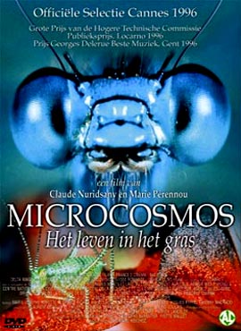 Es un campo, un día cualquiera en cualquier lugar del planeta. Escondido en esta pradera se esconde un mundo enorme, grande como un planeta. La maleza se transforma en bosques impenetrables, las piedras se tornan montañas y la más pequeña charca se transforma en un océano. El tiempo pasa de otra manera: una hora es un día, un día es una estación y una estación es una vida. Para descubrir este mundo, para escuchar su murmullo, es necesario guardar silencio. Documental en parte, este filme sobre el mundo de los insectos es fruto del esfuerzo denodado de dos biólogos franceses que invirtieron 15 años en investigaciones, tres en el rodaje y seis meses en el proceso de edición. Que es ficción por lo demás, ya que aunque no figura en la ficha técnica, un nutrido ejército de superestrellas está llamado a hacer de Microcosmos: el pueblo de la hierba un gran espectáculo de acción, romance y fugas: escarabajos, mariposas, arañas, saltamontes, abejas, mariquitas, hormigas, caracoles…