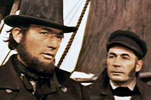 La vida del capitán Ahab transcurre en el entrepuente y solo sale por las noches. Para la mayoría de la tripulación es apenas un fantasma con una pierna de palo que hace retumbar sus pasos en la cubierta. El Pequod, barco ballenero comandado por el viejo marinero, navega incansablemente por los siete mares guiado por la obsesión de Ahab de capturar a Moby Dick, una ballena blanca que hace años le arrancó su pierna. El odio del capitán hacia la enorme creatura es tan grande que está dispuesto a sacrificar su vida, la de sus hombres y el barco entero para matarla. El carisma y la fuerza de sus sentimientos son tan poderosos que la tripulación se impregna con sus convicciones. Adaptación de la novela homónima de Herman Melville.