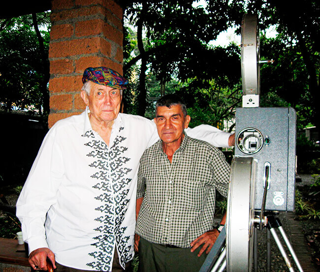 Rodínger Vélez y Mauricio Vélez, padre e hijo respectivamente, son técnicos y proyeccionistas de cine análogo. Mauricio se ha desempeñado durante 24 años como auxiliar administrativo del Teatro Municipal de Envigado, mientras Rodínger, con más de sesenta años de experiencia, ha ejercido su oficio en numerosas salas de cine en Antioquia y en otras regiones de Colombia, incluyendo el desaparecido y emblemático Teatro Junín de Medellín. Sus saberes incluyen tanto la operación de equipos como su adecuación y reparación.