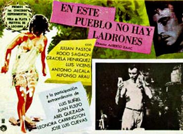 En un pequeño poblado vive Dámaso, un vago sin oficio mantenido por Ana, su mujer, quien es mayor que él y espera un hijo. Una noche, forzando la puerta, Dámaso entra al salón de billar de don Ubaldo y se lleva las tres bolas, que es lo único que encuentra. La culpa recae sobre un forastero y el crimen genera una tremenda crisis, especialmente entre los hombres porque el billar es su único entretenimiento. En este pueblo no hay ladrones es actualmente una película de culto, tanto por su guión —la adaptación de un cuento de Gabriel García Márquez— como por el reparto de extras, entre quienes se cuentan Carlos Fuentes, Luis Buñuel, Carlos Monsiváis, García Márquez y Juan Rulfo. En 1964 obtuvo en México el segundo lugar en el Primer Concurso de Cine Experimental convocado por el Sindicato de Trabajadores de la Producción Cinematográfica (STPC).
