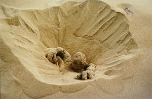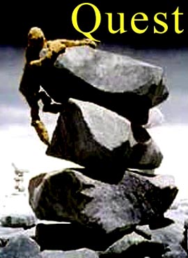 Un hombre está tumbado sobre un paisaje desértico. De repente, se levanta, sacude la arena pegada a su cuerpo y agarra la botella que se encuentra delante de él. La botella está vacía. Se oye el ruido de agua al fluir. El hombre empieza a excavar, la tierra cede bajo su peso y entonces cae en lo profundo. Aterriza sobre terreno inestable, en movimiento, en otro mundo. El terreno vuelve a ceder y el hombre cae esta vez a un desierto de piedras igualmente inestable. Parábola sobre la insistencia del hombre en excavar su propia tumba, es decir, sobre la autodestruccción. QUEST fue premiada con un Oscar en 1996.