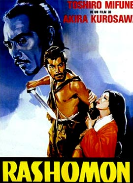 Japón, siglo XII. Bajo las puertas del derruido templo de Rashomon, en la antigua Kioto, se guarecen de la torrencial lluvia un leñador, un sacerdote budista y un peregrino. Los tres discuten sobre el juicio a un bandido, acusado de haber dado muerte a un señor feudal y de violar a su esposa. Los incidentes son narrados desde el punto de vista del ladrón, la mujer, el asesinado —con la ayuda de un médium— y el leñador, único testigo de los hechos.