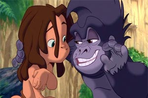 Un barco naufraga en las costas de África y una pareja y su bebé llegan a una isla desierta, donde permanecen con la esperanza de que algún día un barco los rescate. Sin embargo, después del ataque de un feroz leopardo, solamente sobrevive el niño. Cuando Kala, un gorila hembra, encuentra al huérfano en medio de la jungla, decide adoptarlo como su propio hijo a pesar de la oposición de Kerchak, el jefe de la manada. Junto a Terk, un gracioso mono, y Tantor, un elefante algo neurótico, Tarzán crecerá en la jungla desarrollando los instintos de los animales y aprendiendo a deslizarse entre los árboles a velocidad de vértigo. Pero cuando una expedición científica se adentra en la selva y Tarzán conoce a Jane, la hija del profesor que lidera el grupo, sus dos mundos chocan. Es entonces cuando el joven descubre quién es realmente y cuál es el ámbito al que pertenece. Adaptación de la novela clásica de Edgar Rice Burroughs sobre el hombre mono.