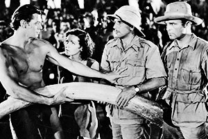 Martin Arlington y su socio Harry Holt, un antiguo novio de Jane Parker, regresan al África con el fin de robar el marfil del mítico cementerio de elefantes, para lo cual pretenden usar a Tarzán como guía. Pero el hombre mono se rehúsa a ayudarles y trata de disuadirles cuando se entera de sus propósitos. Según la leyenda, esa tierra es sagrada y el robo de los cuernos desencadenaría una terrible maldición. Sin embargo, Arlington, decidido a apoderarse del valioso mineral cueste lo que cueste, dispara primero contra un elefante con la esperanza de que éste le guíe de modo instintivo hasta el cementerio, y luego lo hace contra Tarzán, quien luchará para detenerlo con la ayuda de Cheeta y sus amigos.