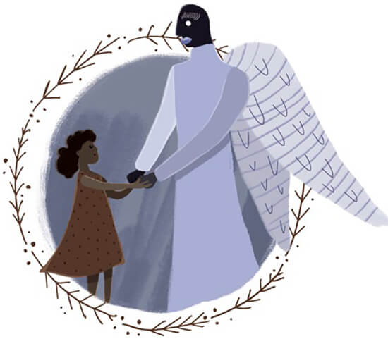 Abrí la puerta de la habitación secreta para ver qué había sido de mi ángel y noté que seguía dormido. Con la luz del día, que sin permiso se adentraba, lo pude ver más tranquilo, ya no tan tosco; su hermosa piel morena descansaba serena. Le reparé su cara, sus facciones se parecían a las de mi madre: cejas pobladas, nariz chata, labios gruesos. Lo único que lo hacía un poco diferente a las personas que conocía era su enorme estatura y, obviamente, el par de alas que ya estaban secas; de resto, lo encontraba muy parecido a los mortales de mi pueblo moreno.