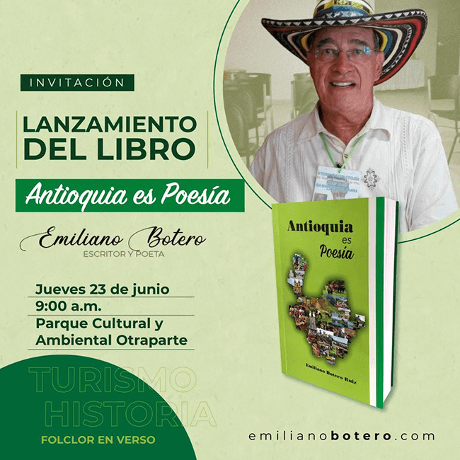 Un reconocimiento convertido en poema a la magnificencia del departamento de Antioquia en Colombia, pionero de colonización y desarrollo. Un homenaje a nuestra raza paisa, al esfuerzo por superar la calidad de vida de nuestros coterráneos y un impulso para que conozcan la belleza topográfica de nuestras regiones. En sextillas, versos octosílabos y rima consonante finqué y narré en Antioquia es poesía las costumbres, arquitectura, toponimia, gastronomía, artesanías, gentilicio, historia y muchos aspectos que hacen de la raza antioqueña muy especial y desarrollada. Porque yo llevo en mi sangre este legado, me atreví a concretar un proyecto literario en poesía que entrego a mi gente y a mi pueblo como muestra de amor y agradecimiento.