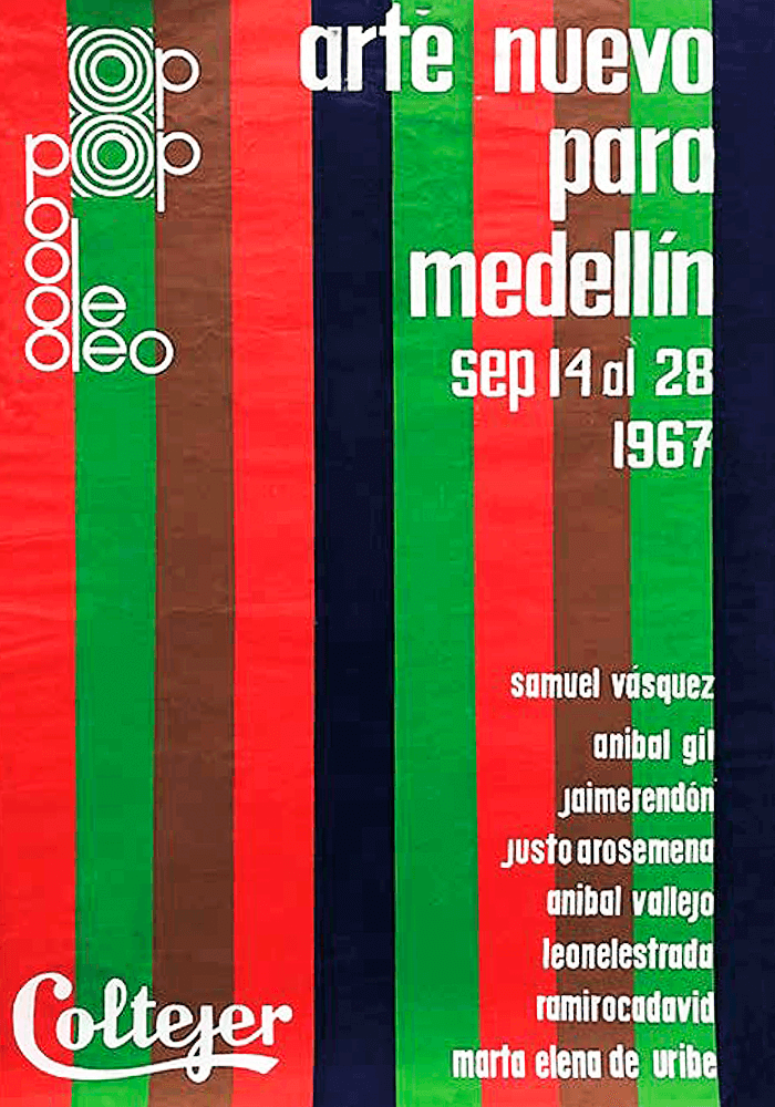 «El segundo antecedente directo de la Bienal de Medellín es la exposición Arte Nuevo para Medellín, realizada del 14 al 28 septiembre de 1967. Esta muestra organizada por Leonel Estrada y por mí, patrocinada por Coltejer dentro de la celebración de su sexagésimo aniversario, constituye la primera exposición colectiva de artistas que vivíamos en Medellín y hacíamos arte contemporáneo. Hasta ese momento, los eventos artísticos que tenían lugar en Medellín con cumplida periodicidad, se realizaban en el Museo de Zea: uno era el “Salón de Ceramistas”, donde las señoras de Medellín exponían cada año sus floreros y ceniceros de barro, engobes, esmaltes y craquelados. (De ese espantoso panorama decorativo sólo se apartaban las cerámicas esculturales de Juan Camilo Uribe que hoy casi nadie recuerda, y un par de ceramistas más). El otro era el “Salón de Acuarelistas” atosigado de tipismo y nostalgia. Ambos salones tenían denominación nacional, pero más del noventa por ciento de los participantes eran locales. Tenían un problema conceptual porque justificaban su razón de existir en el ejercicio de una misma y exclusiva técnica. Eso explica la popularidad en Medellín de la acuarela y la cerámica durante todos esos largos años, a costa de retrasar una concepción y una visión más actuales y más actuantes de las artes en nuestra ciudad».