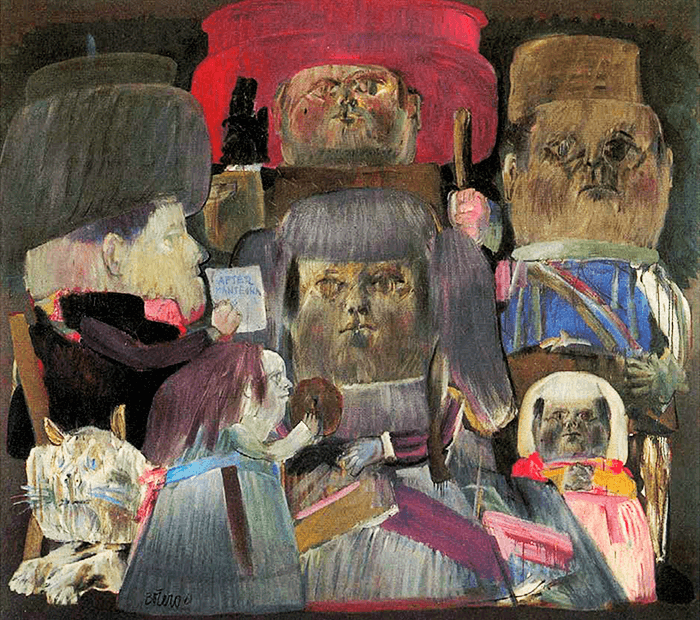 «Brian Nissen hacía una pintura donde sus neo-figuras anfibias deambulaban con humor y desenfado por un espacio ambiguo. “El artista no sólo debe convivir cómodamente con la ambigüedad; también debe cultivarla. Es el atributo especial de la percepción que permite el enlace inesperado de elementos dispares, lo cual puede generar ideas, efectos y prácticas nuevas y originales”, dice Nissen».