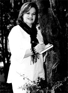 Ángela Penagos Londoño en sus propias palabras: “Olorosa a manzana, de niña deseaba alcanzar las nubes para colorear leones y elefantes. En la escuela tocaba la vida con dedos pequeños pillando renacuajos y hormigas enfiladas. Mi maestra Mery modulaba la eme de mamá… Resuena en mi oído como el sonido de la caracola marina. La u era el columpio del universo y la o ventana por donde me asomaba al corazón. Emprendí mi viaje por calladas curvas y arroyos interiores. La adolescencia me esperaba a la vuelta de la esquina. La generosidad, el deseo de complacer, el entusiasmo y la imaginación eran mi gracia. Comprendí que a través de la convivencia y la diferencia nos damos la mano para deletrear la flor que crece en espiral acercándonos y alejándonos del centro hasta llegar a nuestra propia voz. Los libros me contaban historias fantásticas y me hacían compañía. Búsqueda intensa que termina en un homenaje a mi padre que me acercó a ellos, cuyas páginas siguen aleteando como pájaros en el cielo que él habita”.