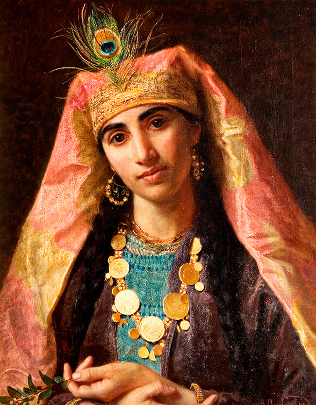 Este visir tenía dos hijas, ambas muy hermosas. La mayor se llamaba Sahrazad y la menor, Dunyazad. La primera había leído libros, historias, biografías de los antiguos reyes y crónicas de las naciones antiguas. Se dice que había llegado a reunir mil volúmenes referentes a la historia de los pueblos extinguidos, de los antiguos reyes y de los poetas.