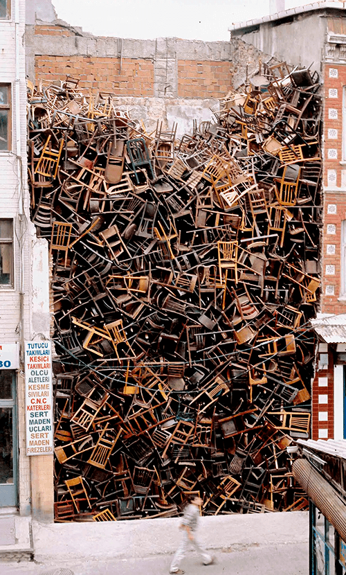 1550 sillas: una topografía de la guerra. Instalación de Doris Salcedo en Estambul, Turquía, 2003. Foto tomada de Historia-arte.com.