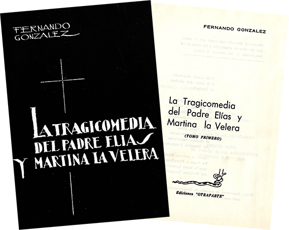 La tragicomedia del padre Elías y Martina la velera (1962) (en adelante Tragicomedia) fue el último libro publicado en vida de Fernando González. Se editó en 1962 en dos tomos y se divide en tres actos: el primero dedicado a Martín Heidegger, el segundo a Fernando Rojas de Montalbán y a Juan Pablo Sartre [*], y el tercero a Juan xxiii. González lo considera una trilogía agonística: 1.º El padre Elías Amando: corresponde a la creación de la novela, es decir, crear imaginaciones internas para vivenciar el viaje pasional, mental y espiritual que suscita la imagen de las manos de Martina la velera y la muerte de Palillo, primo del padre Elías; 2.º El padre Elías novelando: muestra el retiro del padre que, tras ser expulsado del sacerdocio por inmoral, se va a vivir a una finca, y estando allí decide regalar la finca a Martina para que se case con Jovino, lo que impide que Julio Buche pueda pretenderla; 3.º El padre Elías agonizando, muriendo y viviendo: muestra la vivencia de la agonía y muerte del padre Elías, que, tras ser arroyado por un automóvil conducido por Julio Buche, concluye su vida alcanzando el viaje místico.