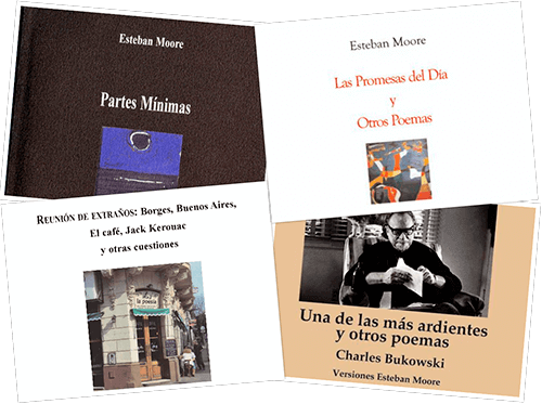 Esteban Moore (Buenos Aires, 1952) es poeta, ensayista y traductor, autor de una decena de libros de poesía y varios volúmenes de poesía en traducción del inglés al castellano de distintos autores contemporáneos en lengua inglesa. Ha obtenido becas del Fondo Nacional de las Artes y su obra ha recibido diversas distinciones, entre ellas el Premio Fondo Nacional de las Artes y el Tercer Premio Municipal en la categoría de ensayo. Por sus aportes al género recibió la Orden Alejo Zuloaga, otorgada por la Universidad de Carabobo en Valencia, Venezuela (2012), y en 2020 la Legislatura de la Ciudad Autónoma de Buenos Aires lo declaró Personalidad Destacada de la Cultura de la Ciudad. Su obra ha sido incluida en diversas antologías y parcialmente traducida al inglés, italiano, francés, alemán, lituano, portugués y albanés. En poesía ha publicado «La noche en llamas» (1982), «Providencia terrenal» (1983), «Con Bogey en Casablanca» (1987), «Poemas 1982-1987» (1988), «Tiempos que van» (1994), «Instantáneas de fin de siglo» (1999), «Partes Mínimas» (1999), «Partes Mínimas y otros poemas» (2003), «Antología poética» (2004), «Partes Mínimas -uno/dos-» (2006), «El avión negro y otros poemas» (2007), «Veinte años no son nada» (2010), «Pruebas al canto» (2012), «Poemas 1982-2007» (2015), «Las promesas del día y otros poemas» (2019) y «Selección poética» (2019). Como ensayista publicó «Primer Catálogo de Revistas Culturales de la Argentina» (2001) y ha dado a conocer en revistas y diarios nacionales y extranjeros textos sobre la obra de Alberto Girri, H. A. Murena, Horacio Salas, Lawrence Ferlinghetti, Allen Ginsberg y la poesía argentina contemporánea, reunidos en «Versiones y apropiaciones» (2012), «Jorge Luis Borges: el escritor poeta» (2017) y «Reunión de Extraños: Borges, Buenos Aires, El café, Jack Kerouac y otras cuestiones» (2020). Así mismo, en su condición de cronista urbano concibió las obras «Librerías de valor patrimonial de Buenos Aires» (2003) y «Pizzerías de valor patrimonial de Buenos Aires» (2006), ambos volúmenes realizados junto al artista plástico Horacio Spinetto.