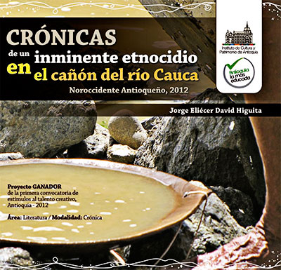 Jorge Eliécer David Higuita es antropólogo, fotógrafo y viajero. En sus propias palabras: “Nómada del vivir, el pensar y el hacer. Múltiple por tanto. Escarabajo y pájaro a la vez”. Oriundo del cañón del río Cauca en el Noroccidente Antioqueño, ha incursionado también en el periodismo, la poesía y el video durante sus numerosos viajes por América Latina. “Crónicas de un inminente etnocidio en el cañón del río Cauca” obtuvo el premio en el área de literatura, modalidad crónica, de la primera convocatoria de estímulos al talento creativo realizado por la Gobernación y el Instituto de Cultura y Patrimonio de Antioquia en 2012. Además de la publicación del libro se realizó una exposición fotográfica itinerante que ilustra el proyecto. Según el autor, se trata de “un texto crudo sobre un tema de gran actualidad, en el que han primado el engaño y la argucia para ocultar las verdaderas problemáticas de un megaproyecto hidroenergético como es Hidroituango; y las características de un territorio hermoso, escarpado y febril, desconocido hasta ahora para los antioqueños y el mundo, y que inicia, merced al mencionado proyecto energético, una irreversible transformación”.