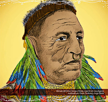 Retrato del Gran Cacique Mestá, a partir de una alegoría realizada por Óscar Cardona y Jorge David.