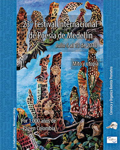Del 6 al 13 de julio de 2013 se realizará el 23º Festival Internacional de Poesía de Medellín, emblema de resistencia mediante los dones de la palabra poética que cohesiona y nos reúne para contribuir con la transformación de escenarios de violencia fratricida en espacios para la coexistencia y la celebración de la vida.