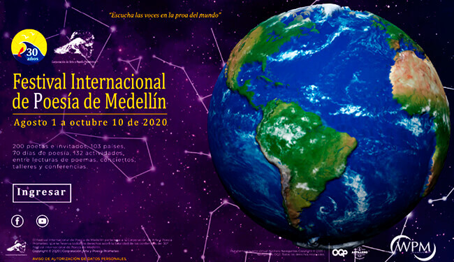 Desde hace 30 años, el Festival Internacional de Poesía de Medellín viene realizándose con un objetivo único y central: celebrar la vida, que el maravilloso milagro de vivir sea un milagro al que asistamos todos. Ha sido y seguirá siendo nuestra tarea. Para hacerla, hemos elegido un método: oponernos, desde una de las más altas conquistas del espíritu, la poesía, a todo aquello que impida, rompa o nos haga dudar de ese milagro: la desigualdad, la injusticia, la pobreza, el hambre, las guerras de usurpación de territorios para apoderarse de sus medios de subsistencia, la destrucción de la naturaleza para satisfacer las ansias de las grandes Corporaciones, la perversa banalización de la vida promovida por los medios de comunicación al servicio, precisamente, de la absurda e imperdonable riqueza del 1% de la población mundial.