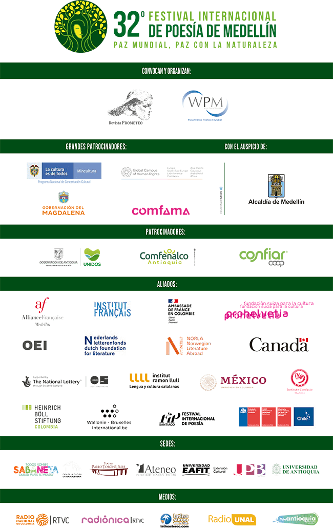 Como en otros años, nuestra celebración poética será un espacio para reunirnos y compartir un evento de gran magnitud que ya es tradición en Medellín y en todo el ámbito poético internacional, unido al espíritu de «Paz mundial, paz con la naturaleza», que hemos propuesto como lema y centro de nuestras reflexiones, hoy que la humanidad vive un sobresalto auspiciado por la configuración de un nuevo orden mundial producto de los conflictos, de los estragos de la pandemia y de la superposición cultural de las potencias del neoliberalismo. Ahora más que nunca es el momento para unir toda vida al origen que es la naturaleza. Sin ella, sin una sensibilidad que la salvaguarde, no encontraremos el camino a la preservación, a la paz grande y duradera. Será un Festival para que las nuevas generaciones conecten con las raíces a partir de una visión ancestral que mana de la lengua materna, que fluye a través de las historias, la diversidad y la poesía. Nuestro aporte a ese gran propósito estará en nuestra apuesta por un compartir desde la fraternidad, uniendo a los pueblos en torno a la cultura, al pensamiento y la belleza de la poesía. Creemos que solo de ese modo, invocando la fuerza espiritual que nos hermana, podremos enfrentar con amor universal, y sabias decisiones que nos protejan, el colapso medioambiental y los grandes desafíos que nos aguardan durante el actual cambio de luces.