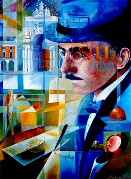 Fernando António Nogueira Pessoa (Lisboa, 13 de junio de 1888 – Lisboa, 30 de noviembre de 1935), más conocido como Fernando Pessoa, es uno de los mayores poetas y escritores de la lengua portuguesa y de la literatura europea. Tuvo una vida discreta, centrada en el periodismo, la publicidad, el comercio y, principalmente, la literatura, en la que se desdobló en varias personalidades conocidas como heterónimos. De día Pessoa se ganaba la vida como traductor. Por la noche escribía poesía. No escribía “su” propia poesía, sino la poesía de diversos alter egos, diferentes en voz, estilo y modos. Publicó utilizando diversos nombres (de los cuales los más importantes son Ricardo Reis, Alberto Caeiro, Álvaro de Campos y Bernardo Soares), e incluso escribió críticas contra sus propias obras, firmadas por sus heterónimos. Habiendo vivido la mayor parte de su juventud en Sudáfrica, donde estudió durante su juventud, la lengua inglesa tuvo gran importancia en su vida, pues Pessoa traducía, trabajaba y pensaba en ese idioma. La figura enigmática en que se convirtió motiva gran parte de los estudios sobre su vida y su obra. Murió por problemas hepáticos a los 47 años en la misma ciudad en que naciera, dejando una descomunal obra inédita que todavía suscita análisis y controversias. —Wikipedia.org