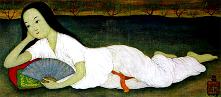“Reclining lady with a fan”