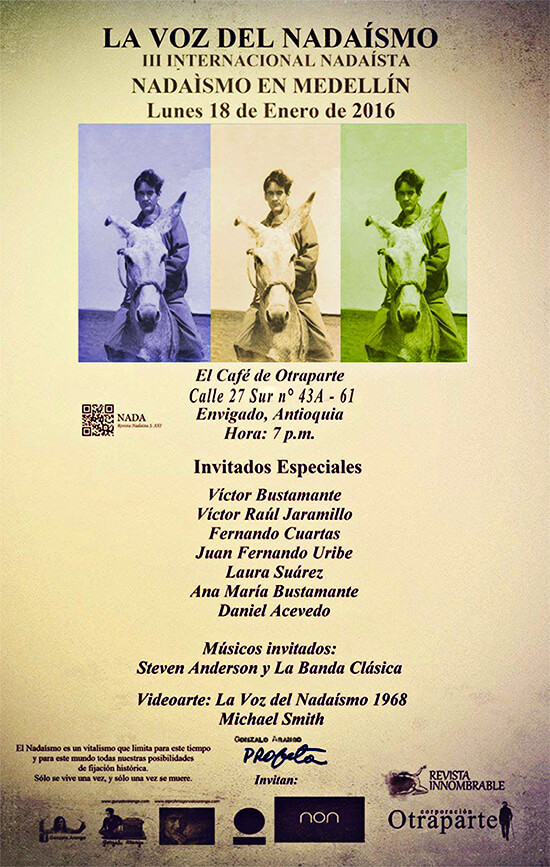 La “Internacional Nadaísta” comenzó en 2014 con la transmisión de la conferencia “Grandeza y miseria de la literatura”, grabación rescatada para la memoria cultural por Michael Smith, creador de la página web “El profeta Gonzalo Arango”.