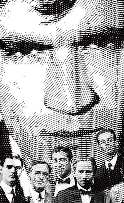 Gonzalo Arango y algunos jóvenes colaboradores del periódico La Fragua (1913), proyecto que antecedió al movimiento Panida. Entre otros, aparecen Fernando González (segundo de izquierda a derecha) y León de Greiff (cuarto).