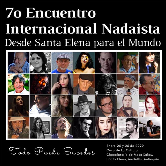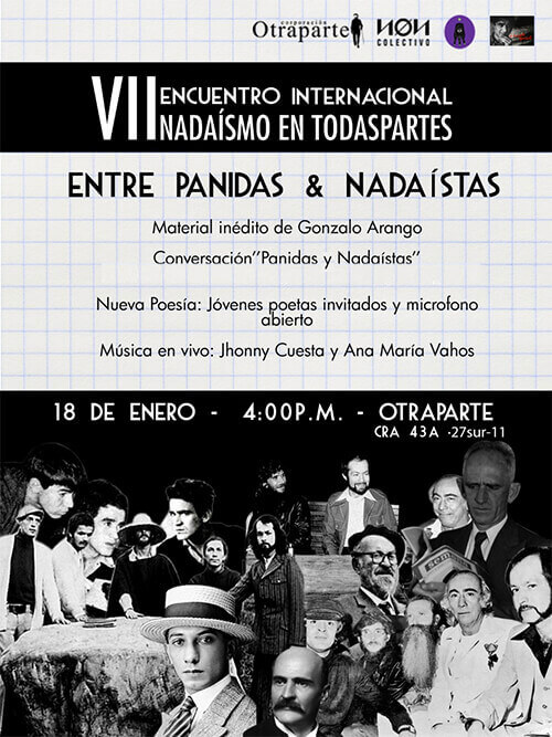 En el aniversario número 89 del nacimiento de Gonzalo Arango (18 de enero de 1931), en diferentes ciudades de Colombia y el mundo sus lectores recordarán al fundador del nadaísmo. La «Internacional Nadaísta» comenzó en 2014 con la transmisión de la conferencia «Grandeza y miseria de la literatura», grabación rescatada para la memoria cultural por Michael Smith, creador de la página web «El profeta Gonzalo Arango». La Corporación Otraparte, Non Colectivo y la Librería Mutante unen fuerzas en 2020 para hacer de esta fiesta nadaísta una mixtura literaria y musical en la que además recordaremos al movimiento Panida, conformado en 1915 por trece jóvenes, entre quienes se destacan Fernando González, León de Greiff y Ricardo Rendón.