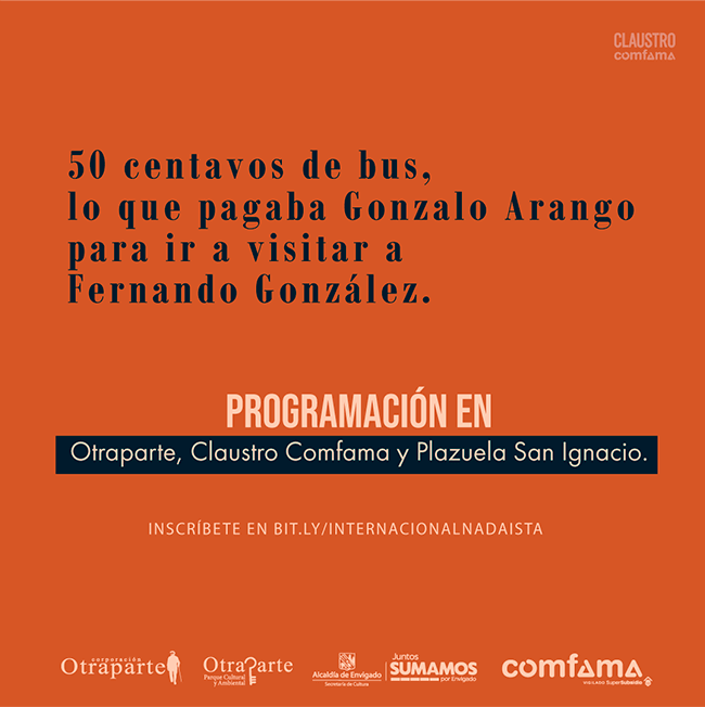 En esta X Internacional Nadaísta te proponemos hacer nuevamente el viaje a 50 centavos en bus desde el Centro de Medellín hasta Otraparte, en Envigado, para conmemorar y traer al presente las ideas, los pensamientos y los nombres de quienes le dieron vida a este movimiento literario y artístico.