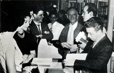 1959. Librería Aguirre, en Maracaibo con Palacé. El maestro Carlos Castro Saavedra firma ejemplares de su nuevo libro. Le acompañan, de derecha a izquierda, Manuel Mejía Vallejo, Fernando González, Alberto Aguirre y Olga Elena Mattei.