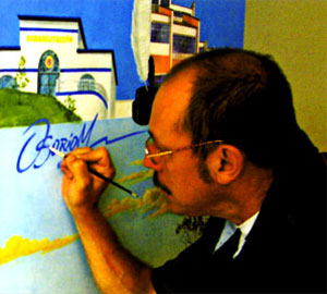 Y para que con menos ceremonia entréis hasta el sagrado altar de este buen artista de la plástica, he de decir que entre la pluma y el pincel como bien los ejerce, tienen sus escritos el lenguaje prosaico cuasi concreto; mas no en sus cuadros en los que texto y contexto se funden en el infinito imaginario del curioso observador.