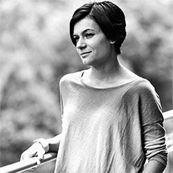 Se fija en su cintura, envuelta delicadamente en un cinturón de cuero de culebra. Las uñas rosa pálido. Los ojos almendrados, los pómulos salientes tienen aspecto de ópalo, pálido y perlado. La mujer que tiene en frente hubiera podido ser una estrella de cine.