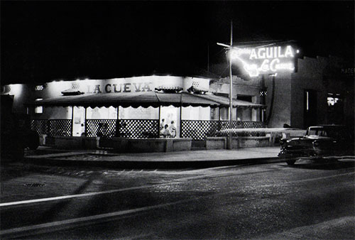 Fundada en 1954, La Cueva es un antiguo bar de cazadores que se volvió famoso por los artistas, escritores e intelectuales de renombre que lo frecuentaron y visitaron, así como por los numerosos episodios que se vivieron en él. Entre los contertulios más ilustres figuran Gabriel García Márquez, Álvaro Cepeda Samudio, Alfonso Fuenmayor, Germán Vargas, Alejandro Obregón, Orlando “Figurita” Rivera, Enrique Grau, Fernando Botero, Nereo López, Luis Vicens, Noé León, Juan Antonio Roda, Cecilia Porras, Luciano Jaramillo, Rafael Escalona, Enrique Scopell, Ricardo González Ripio, Marta Traba, Próspero Morales Pradilla, Bernardo Restrepo Malla, Angel Loockhartt, Luis Ernesto Arocha, Roberto Prieto, Eduardo Vilá, su dueño administrador, y el industrial Julio Mario Santodomingo, entre otros. Desde 1955 y hasta finales de los sesenta, La Cueva —también restaurante, galería y, por supuesto, tertuliadero— es el segundo nombre con el que se identifica al legendario Grupo de Barranquilla.